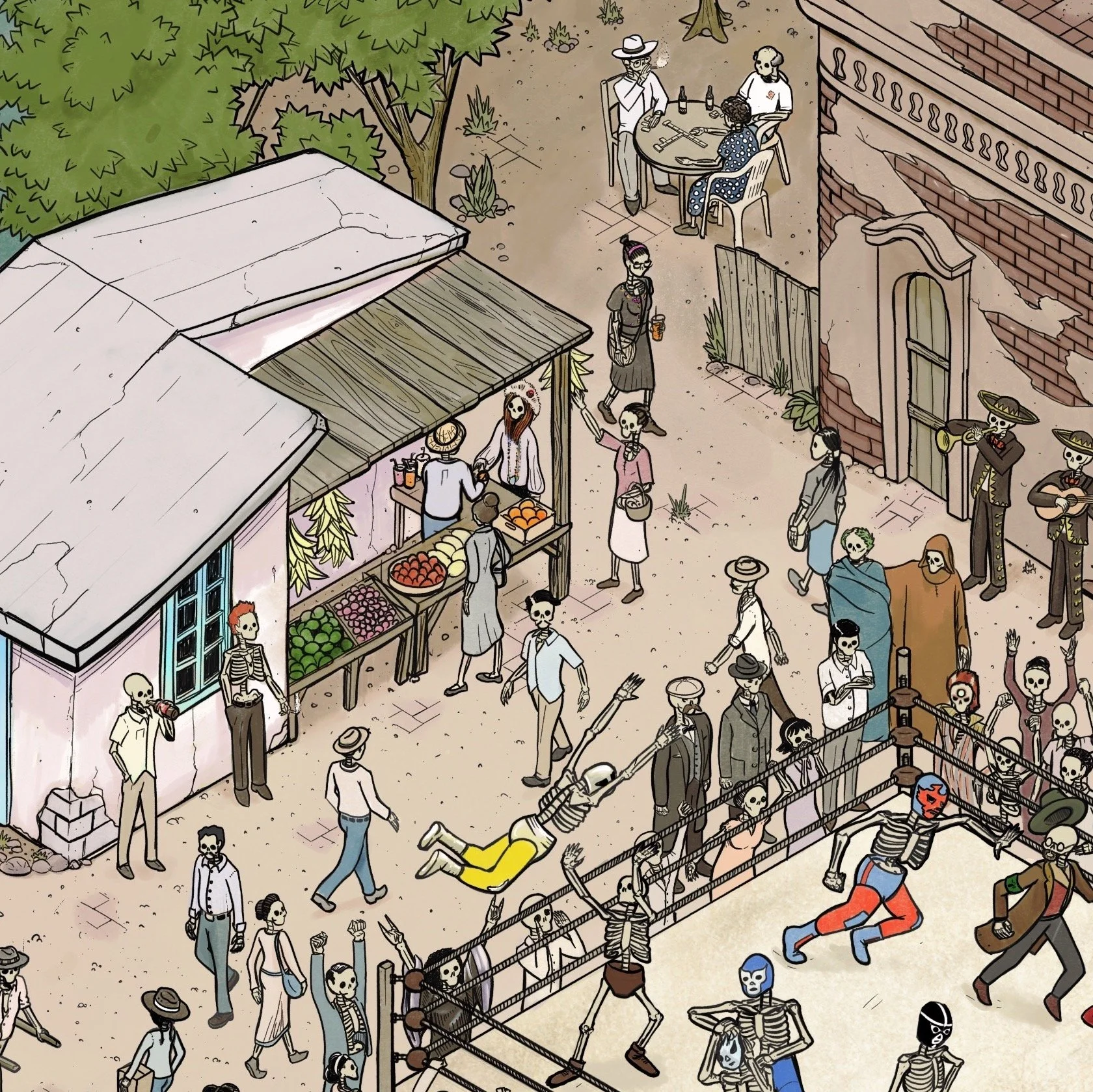 Welcome to Versus, where the spirit of lucha libre collides with music, art, and myth. Inspired by a long-lost notebook filled with cryptic match notes and fevered sketches, this project brings the legend to life through sound and vision. The bold and striking visual art by Holy Noly! captures the heart-pounding drama and masked mystery of the ring, inviting you to step into the arena. We recommend listening along via the Bandcamp link as you explore the art and uncover the hidden stories within. The music, like the legend itself, can also be found across all major streaming platforms.